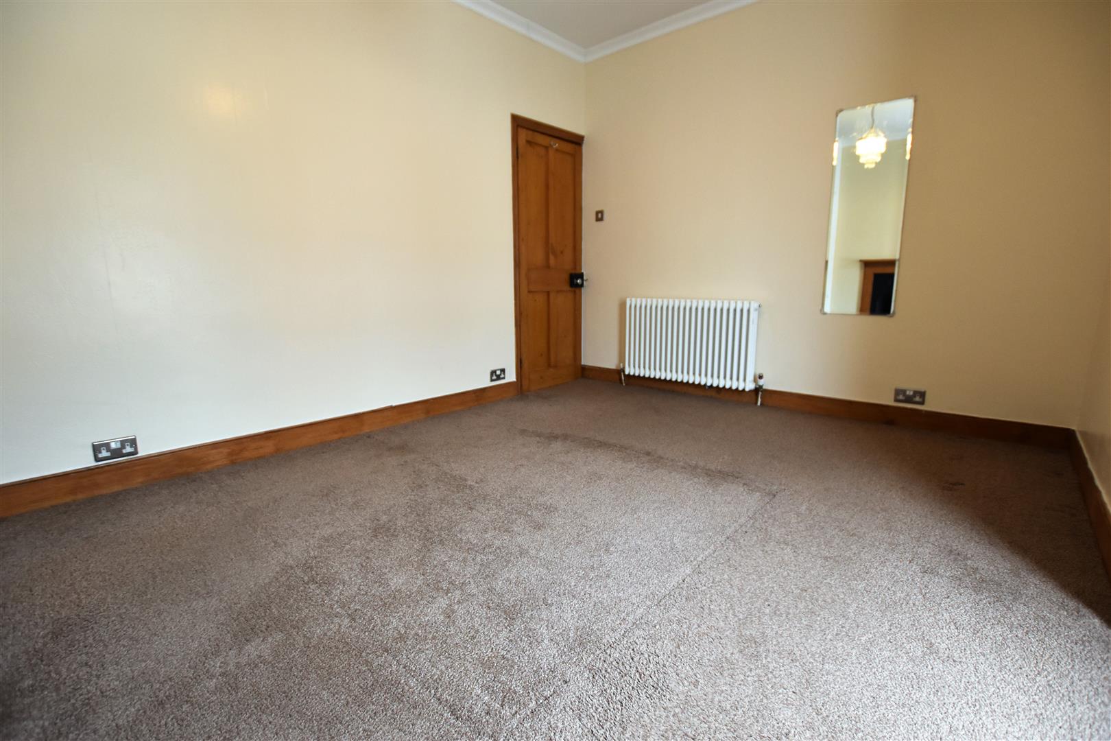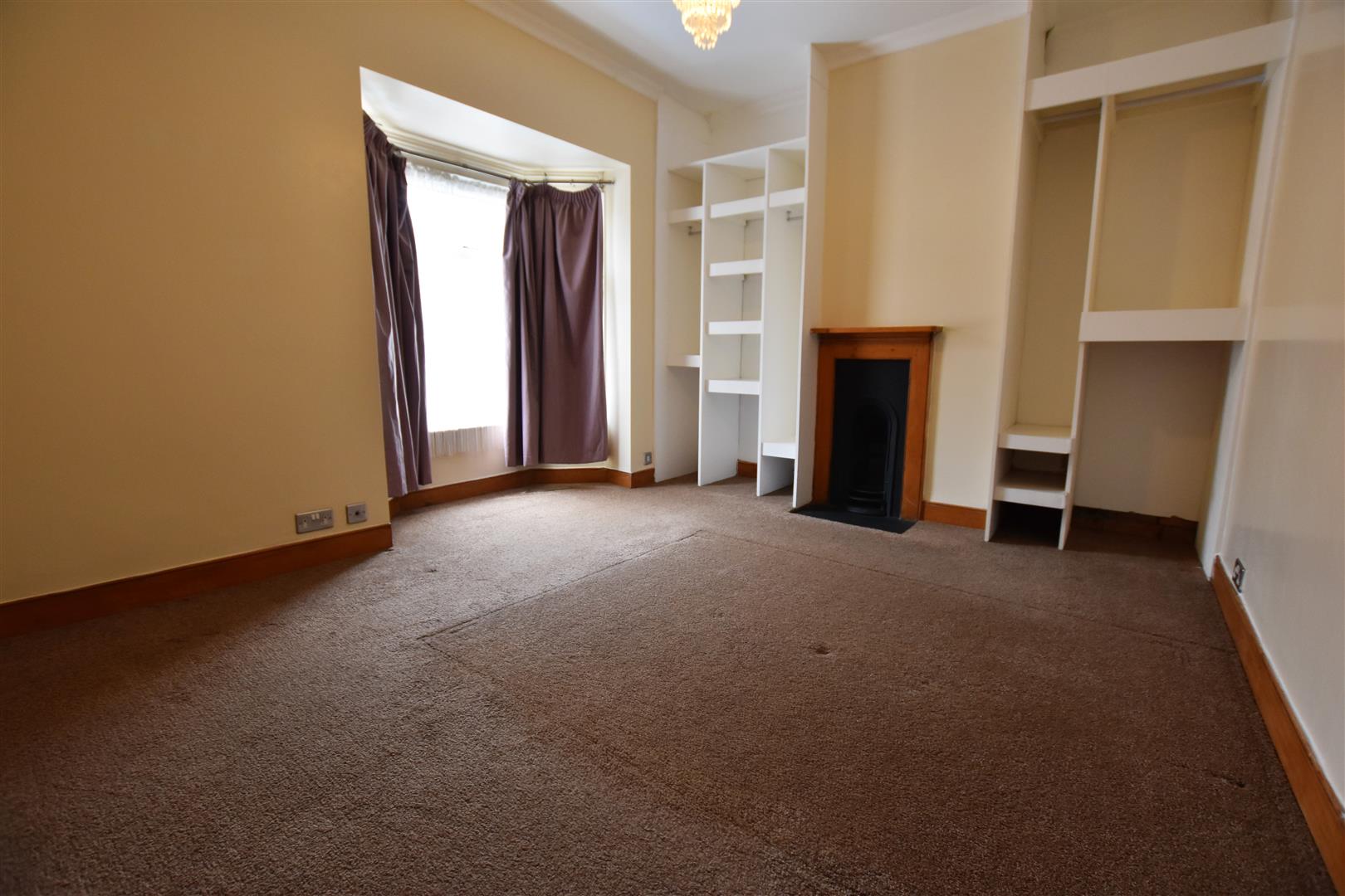 Double glazed bay window to front aspect, Victorian style radiator, feature cast iron fireplace with pine surround, built in open wardrobe to chimney breast recess, coving, TV point.