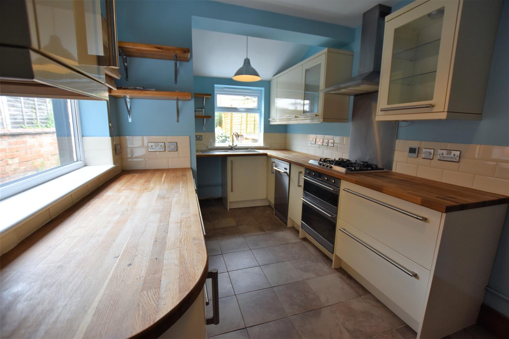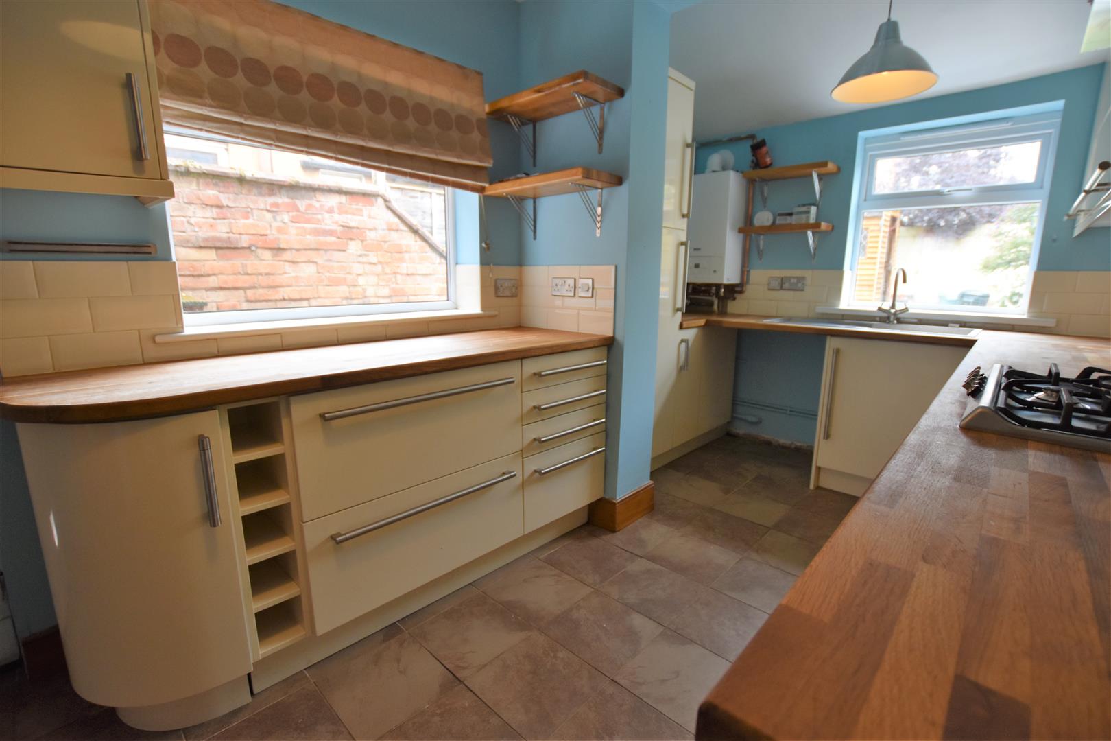 Double glazed windows to rear and side aspect, fitted kitchen comprising of base and wall mounted units with integrated Smeg fan assisted electric double oven and gas hob with stainless steel splashback and chimney hood extractor, single drain stainless steel sink with mixer taps including water filter, solid oak work surfaces, complimentary splashback tiling, plumbing for automatic washing machine and slimline dishwasher, space for fridge-freezer, wall mounted Worcester combination boiler, ceramic tiled flooring with underfloor heating, door to side aspect leading to rear garden, pine door to cellar.