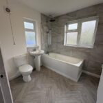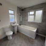 Downstairs family bathroom with shower over bath . 3 double bedrooms with a 4th bedroom leading from rear bedroom which would could have may uses. (walk in wardrobes, office, playroom , gym )